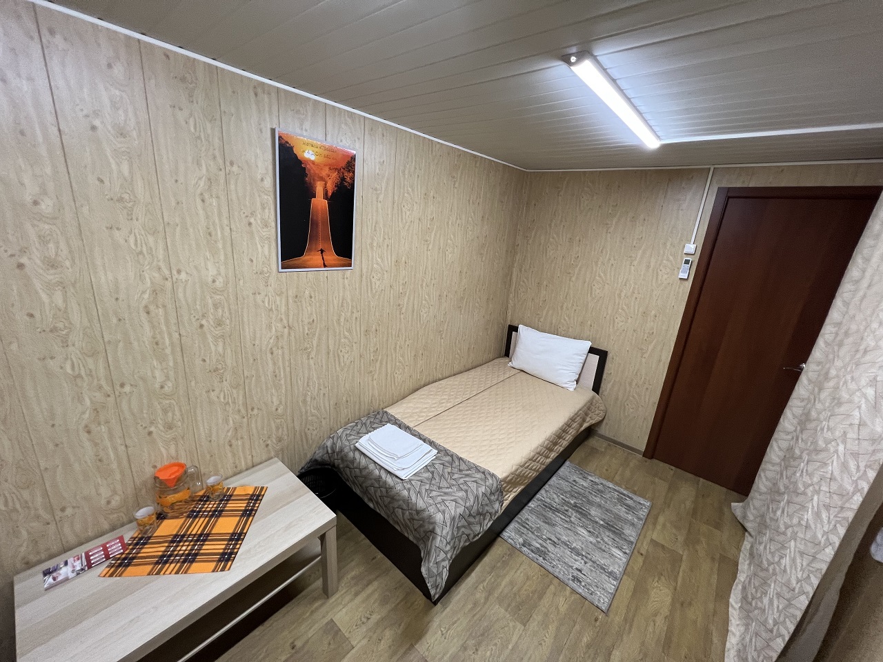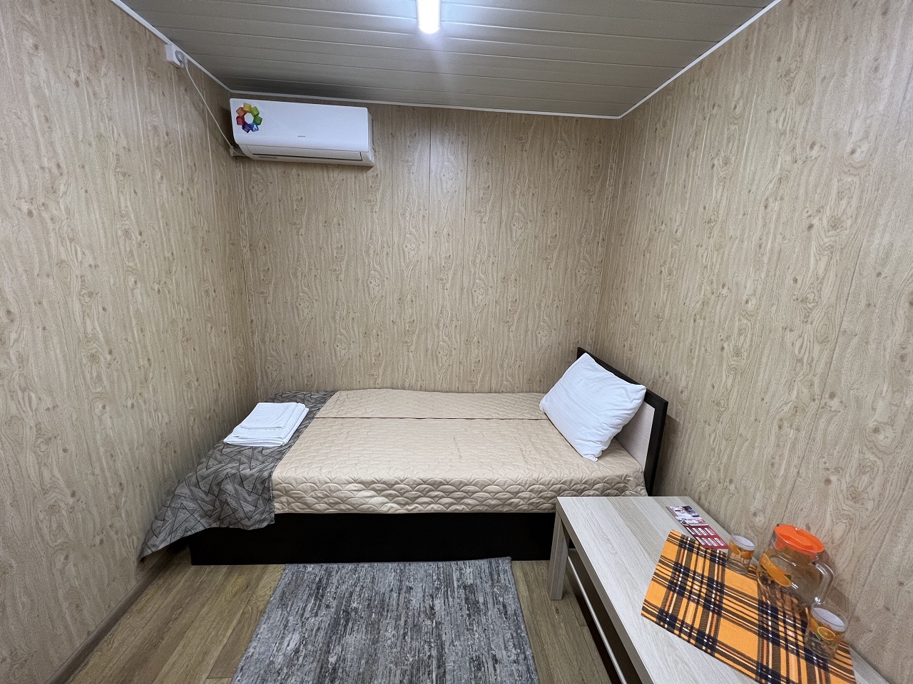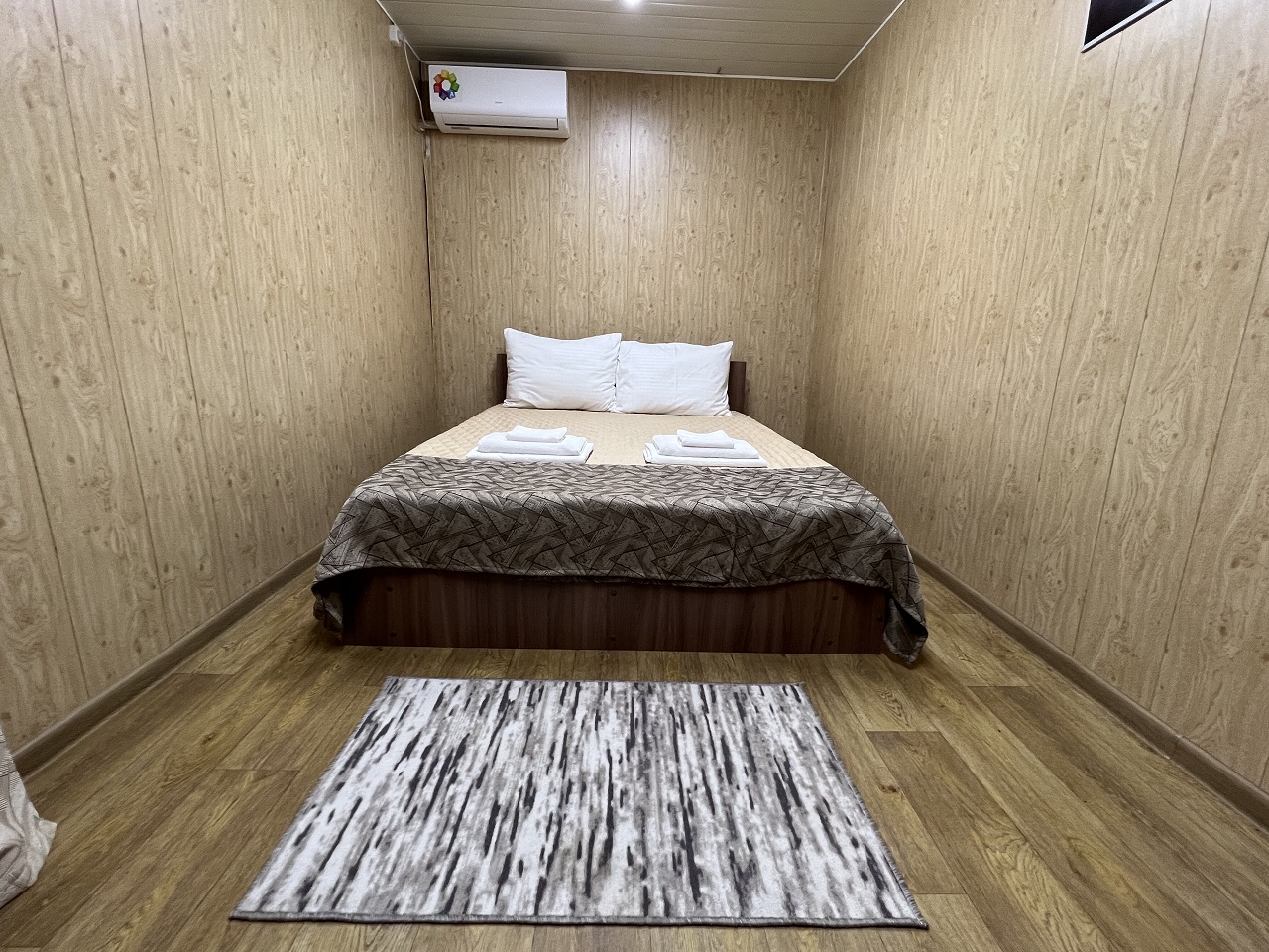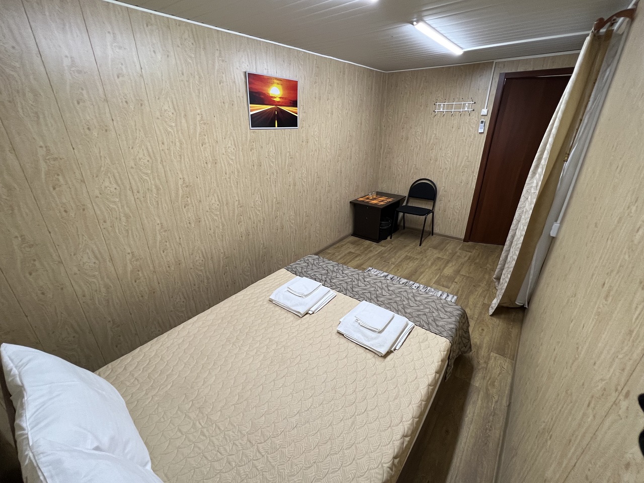 Уютный трехместный номер. В номере одна двуспальная и одна односпальная кровати, прикроватные тумбочки. Так же номер оборудован санузлом с душем, умывальником и унитазом.